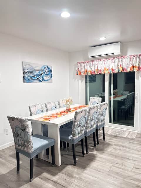 The well-appointed laundry room combines functionality with luxury touches, making chores effortless during your stay. It features a modern washer and dryer, a folding table, ironing board and iron, and ample cabinets and a coat closet for storage and organization. Sleek finishes and thoughtful design elevate this practical space, ensuring convenience without sacrificing style or comfort.