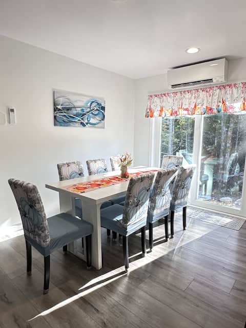 Nature is truly at your doorstep—you might spot hummingbirds at the feeder, listen to birdsong in the morning, or simply enjoy the quiet stillness of the forest. The wide-open sky above the treeline is perfect for stargazing at night or watching colorful sunsets in the evening.